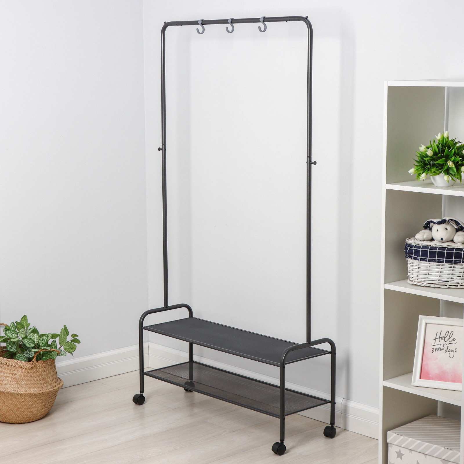 Вешалка гардеробная на колесиках с 2 полками, черный. 162х92х30см