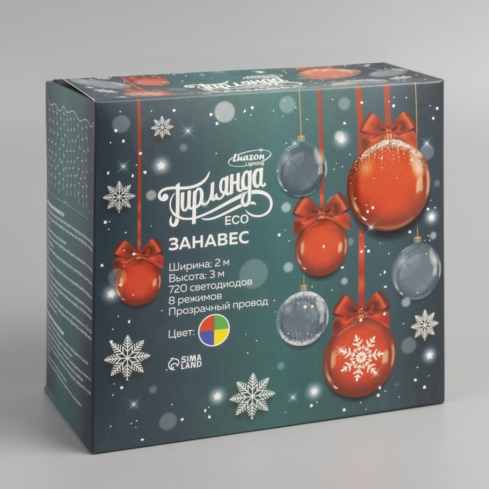 Занавес Luazon ECO IP20, УМС вилка, 2х3 м, Н.С. LED-720-220V, 8 режимов, мульти 1080470 подходит для создания эффектных интерьерных украшений и зонирования помещения: ширмы, шторы, эффект звездного неба под потолком и многое другое.