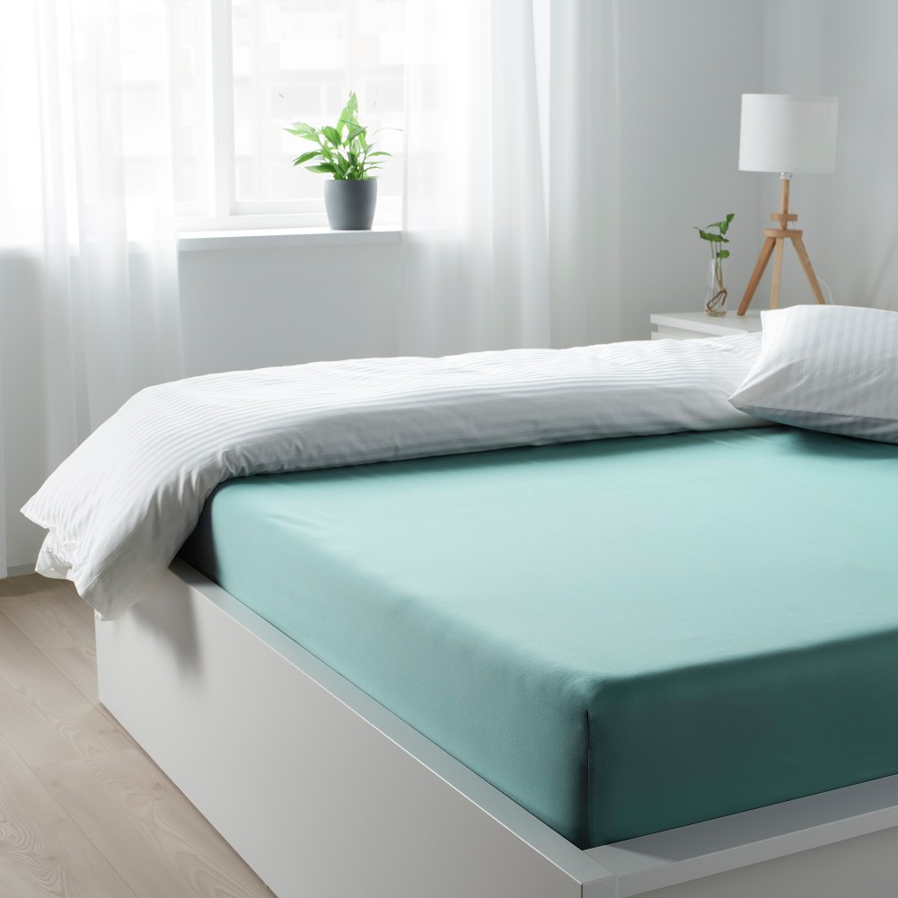 NATTJASMIN ИКЕА Натяжная простыня на резинке подходит для матрасов толщиной до 26 см.