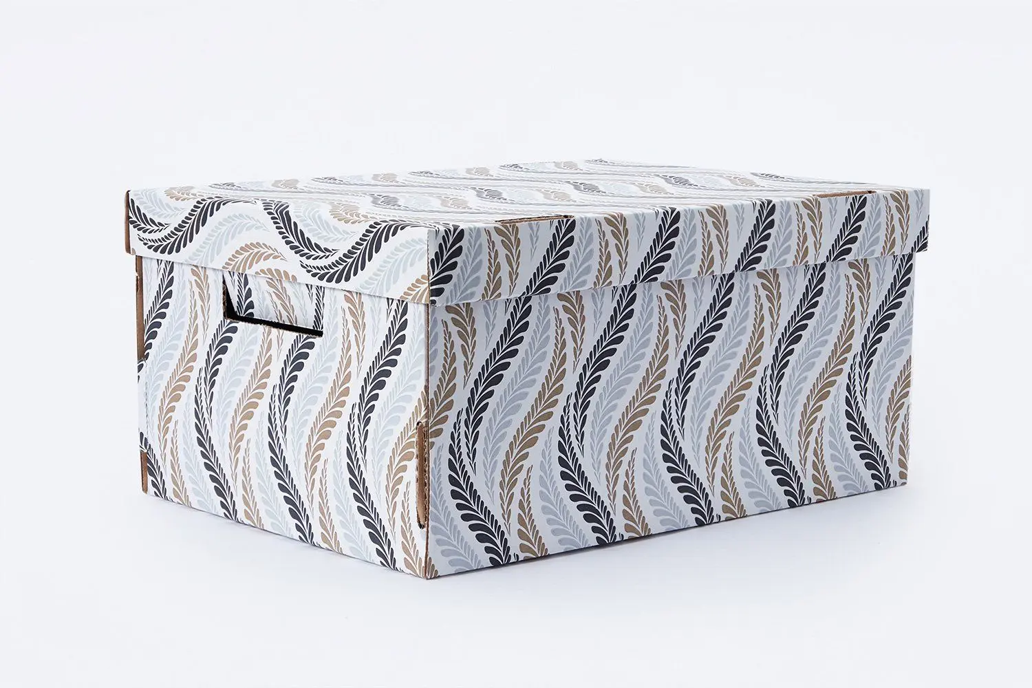 Удобная транспортировка позволяет без труда поднимать и перемещать ее, а цельное дно не позволяет коробке раскрыться при транспортировке. Изготовлена из микрогофрокартона высокого качества. Поставляется в комплекте с крышками. Материал коробки подлежит переработке