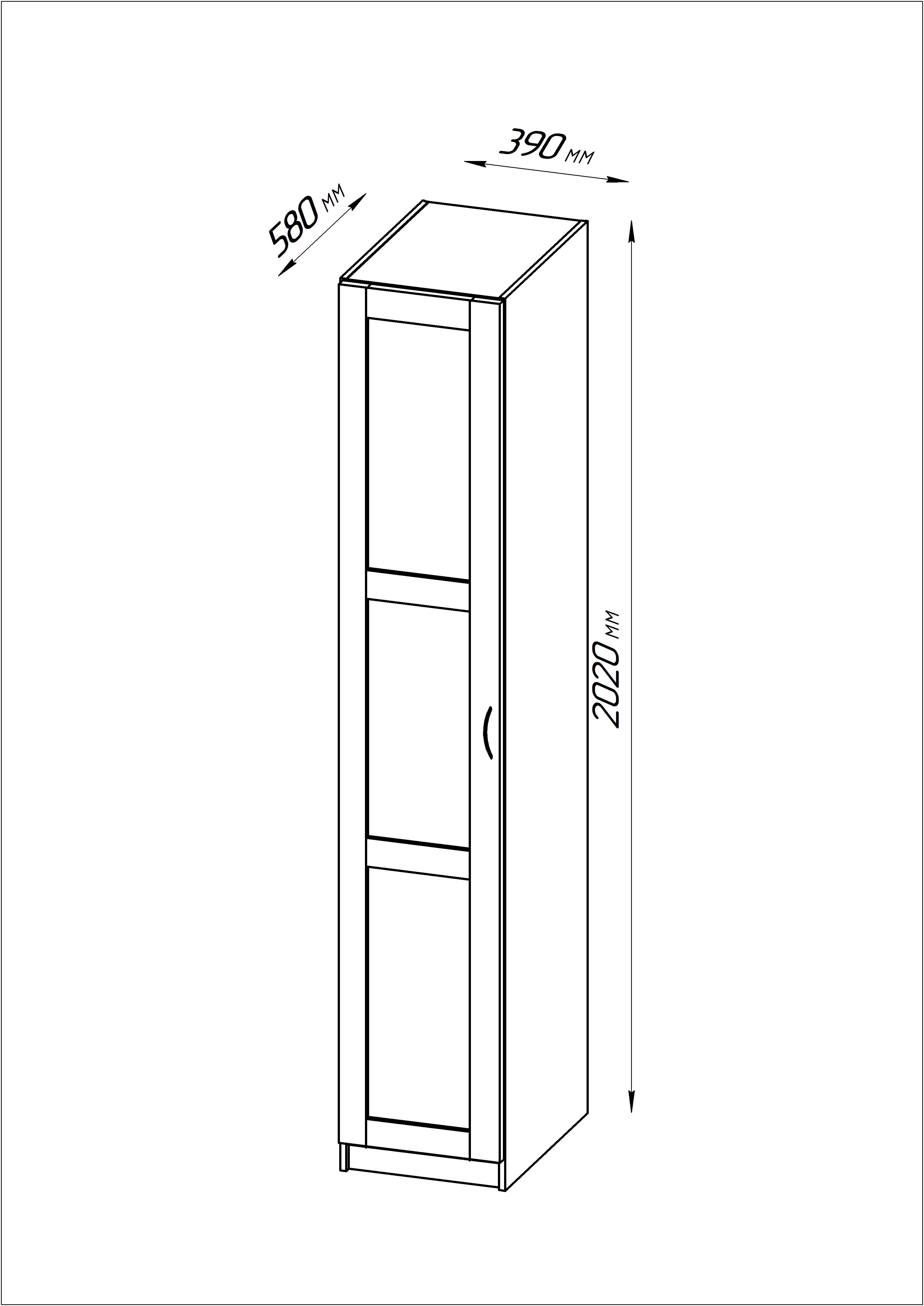 Оптимальные размеры: 39 см (ширина) × 58 см (глубина) × 202 см (высота) — идеальны для узких помещений и компактных комнат.