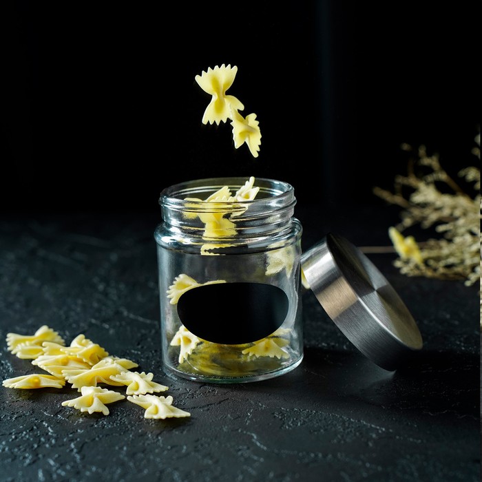 Банка для сыпучих продуктов изготовлена из стекла. Имеет плотно закрывающуюся крышку, которая защищает продукты от влаги и посторонних запахов. В ёмкости удобно хранить крупы, специи, макаронные изделия, сахар, муку и бобовые.