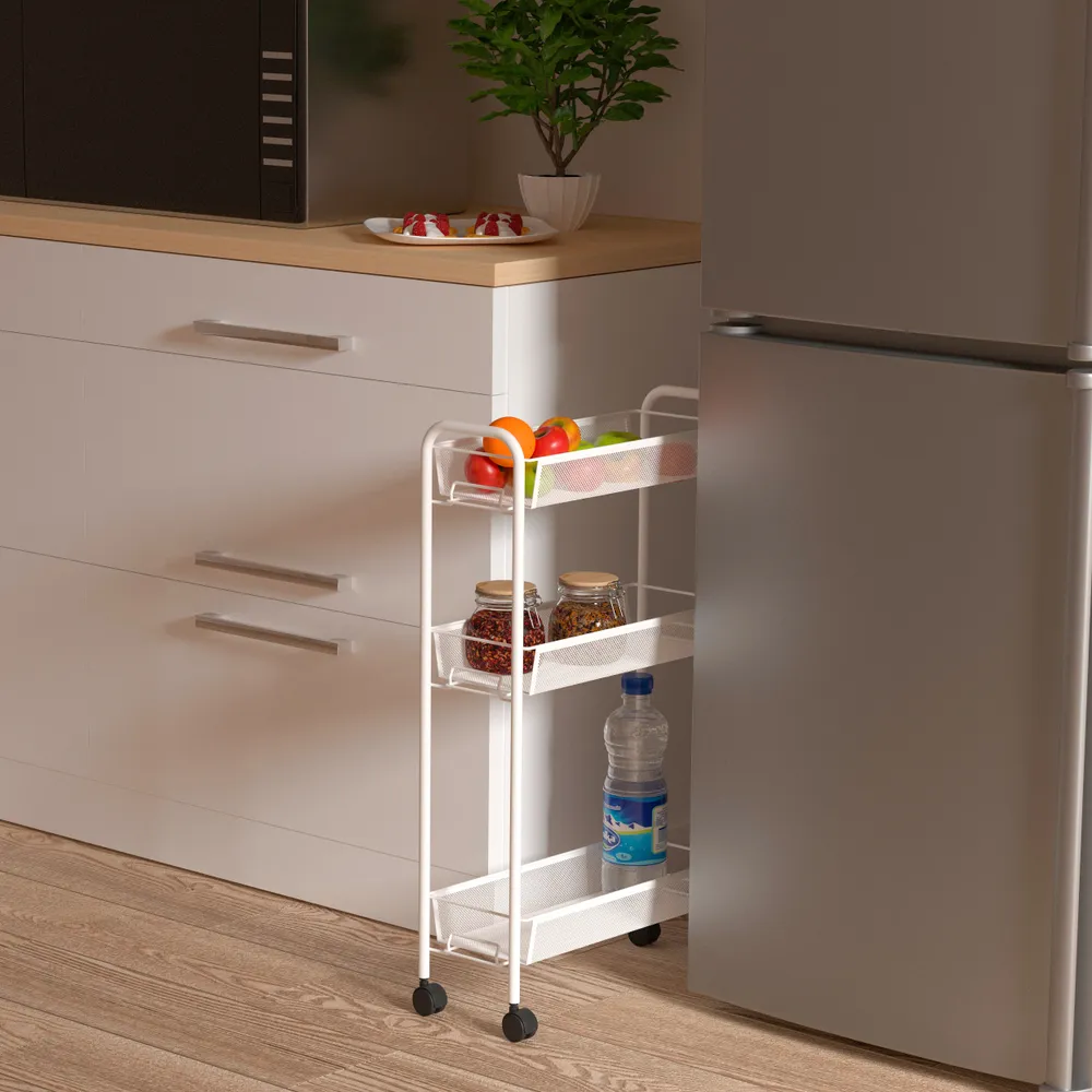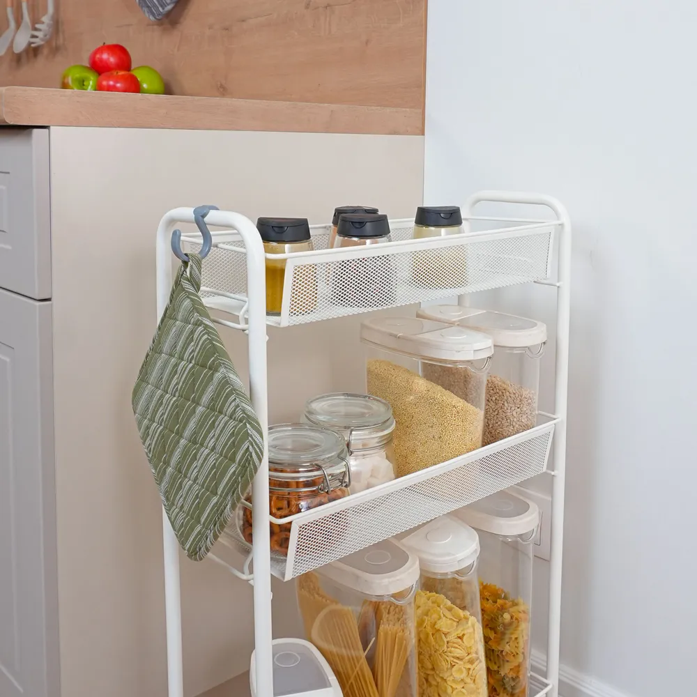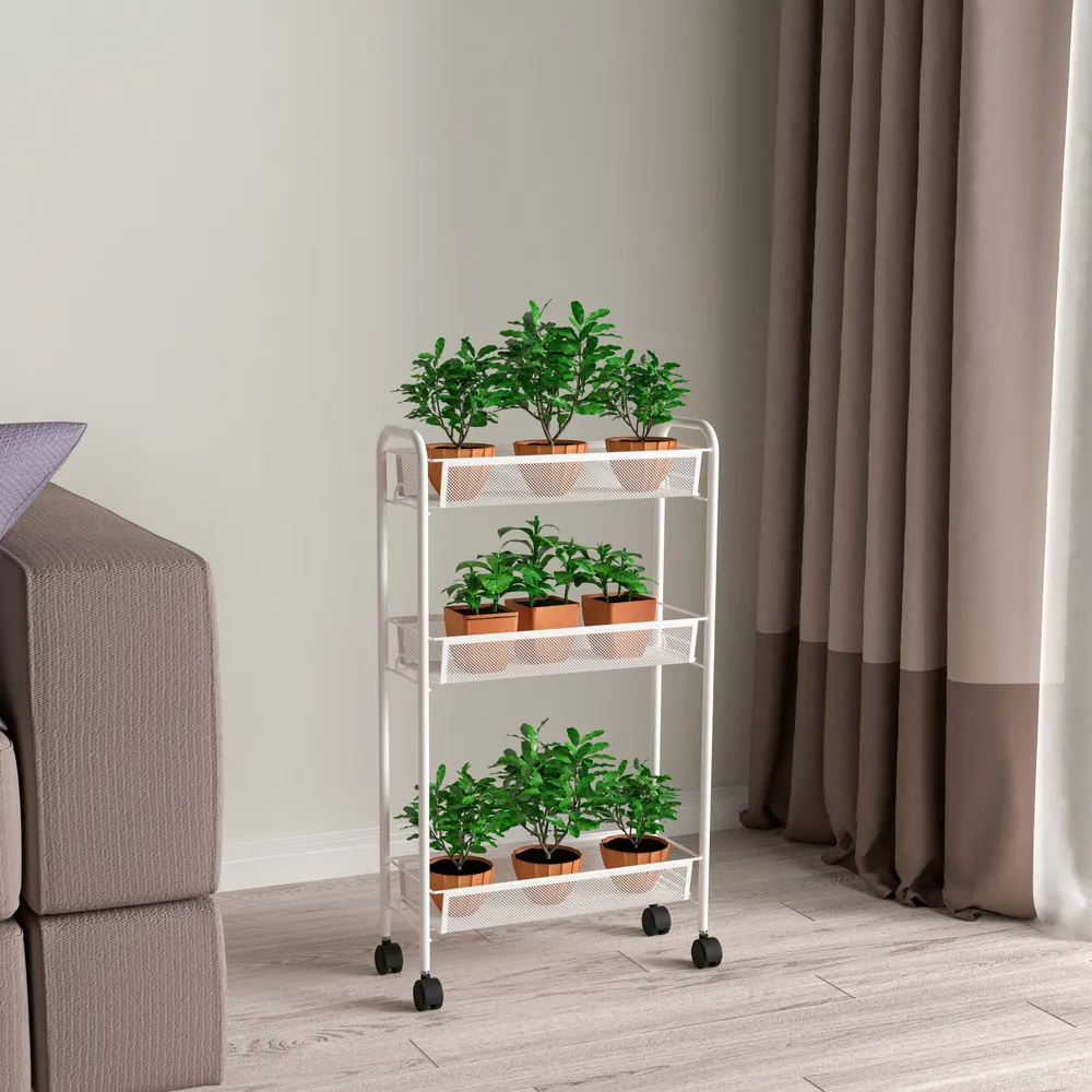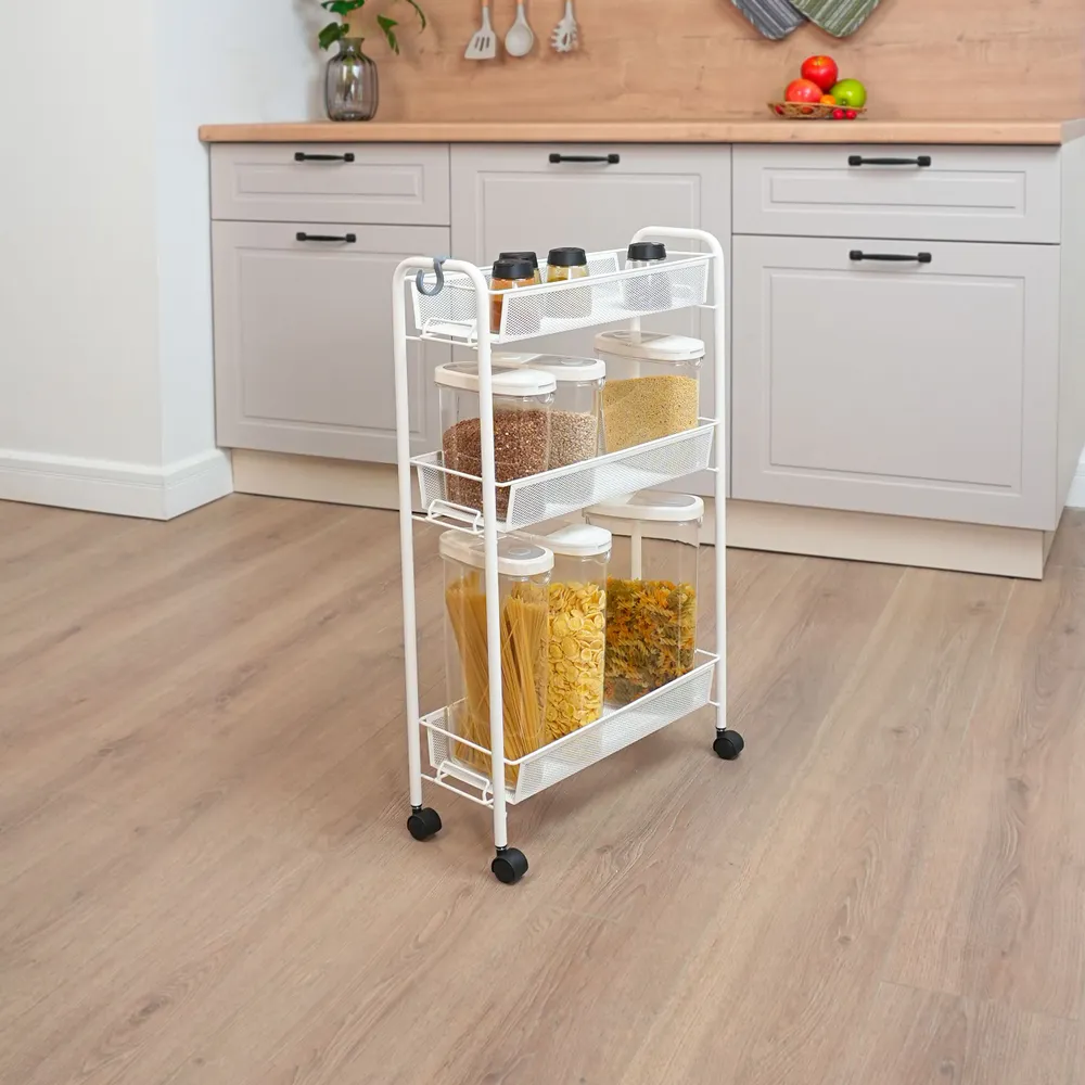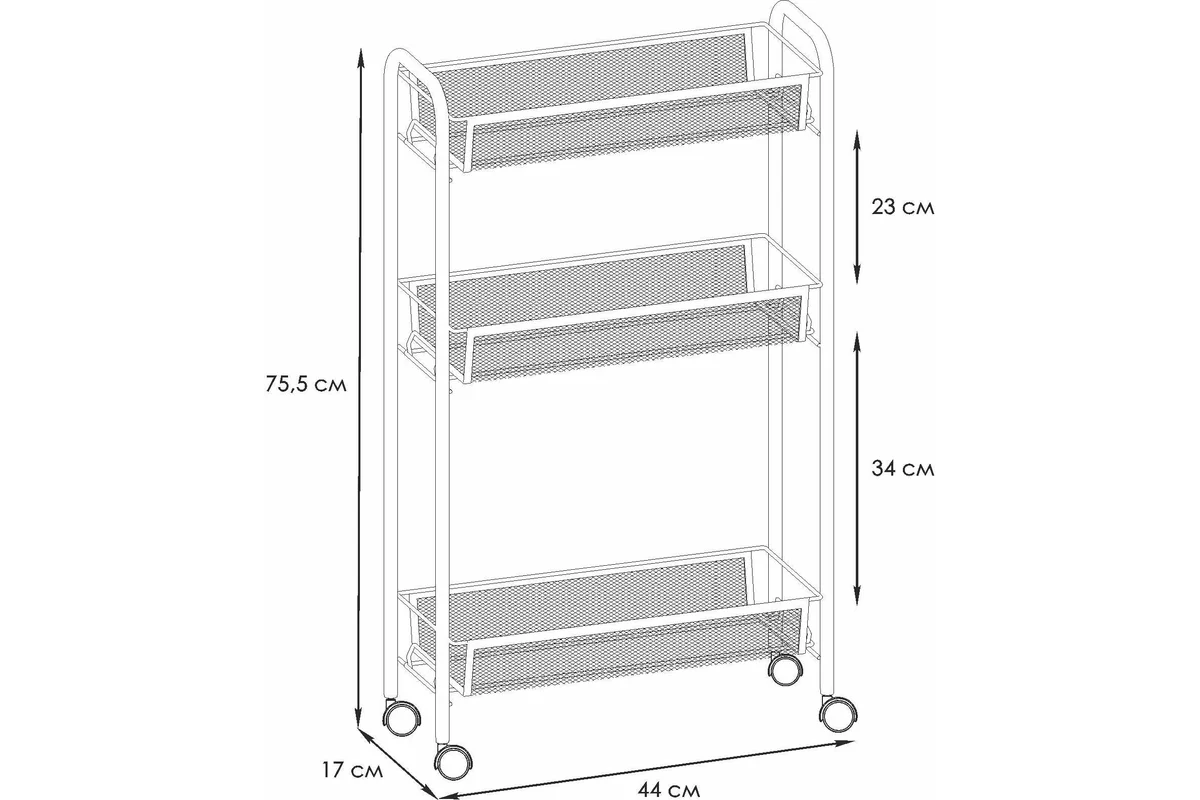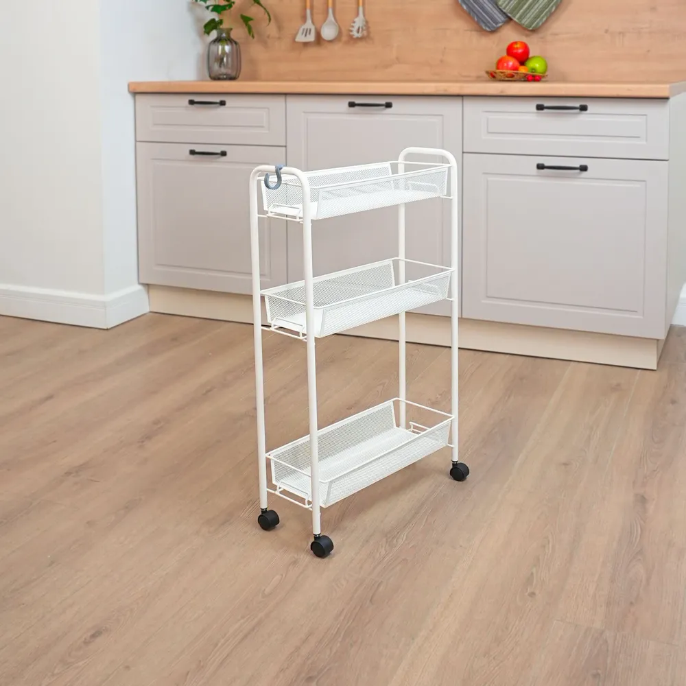 Этажерка на колёсиках, 3 яруса, белый, 44х76х17см
