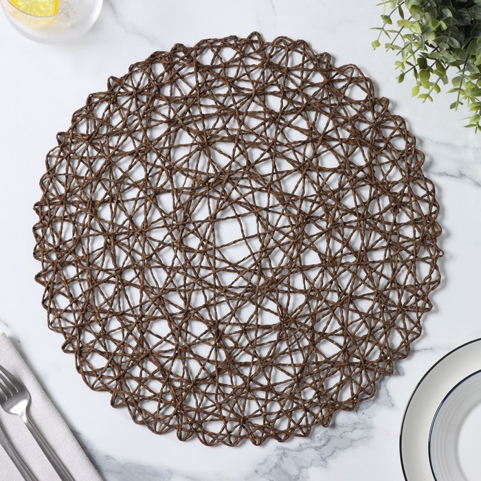 Салфетка сервировочная на стол Одуванчик, d38 см, коричневая