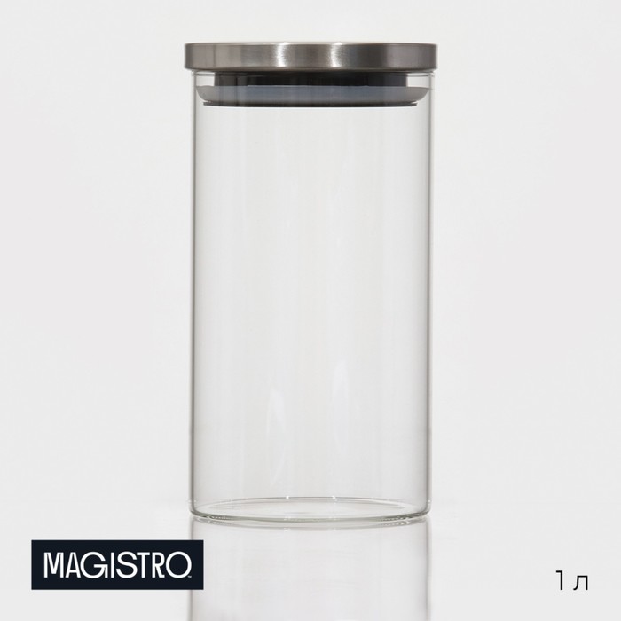 Банка для сыпучих продуктов, стекло/металл. 1л, 10х19см
