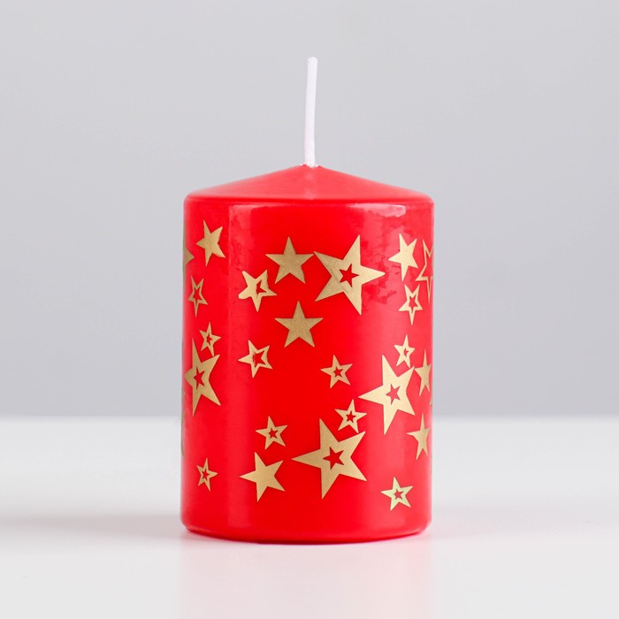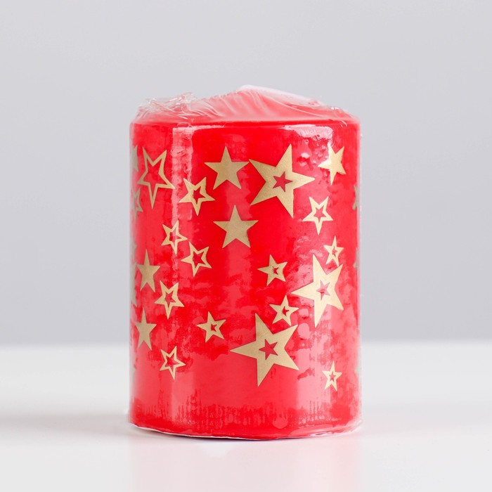 Свеча - цилиндр, красный/золото. 8см