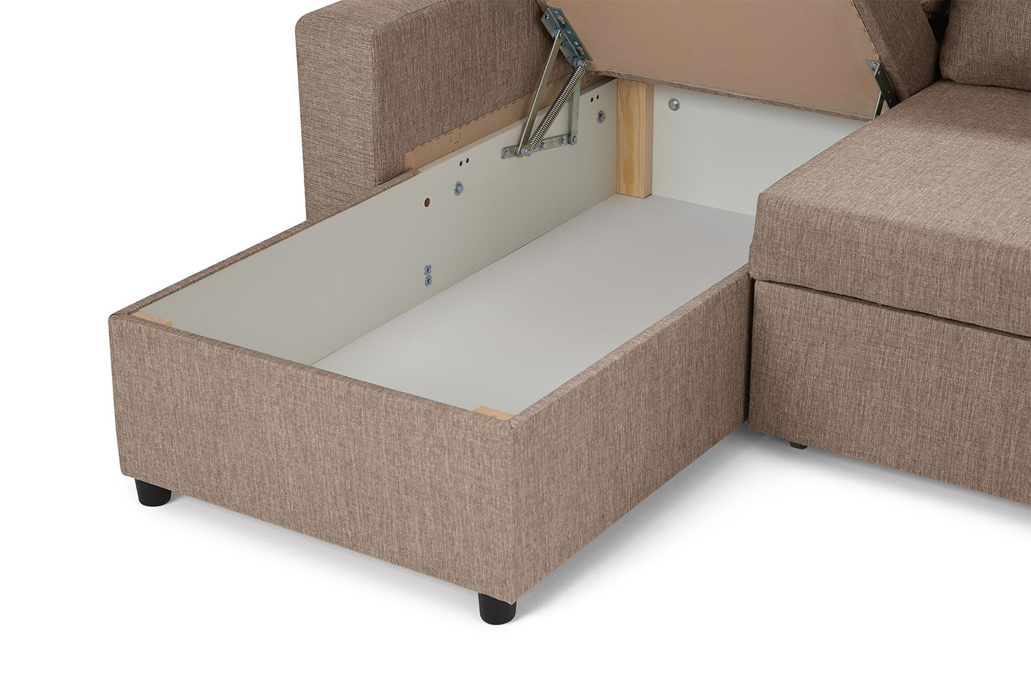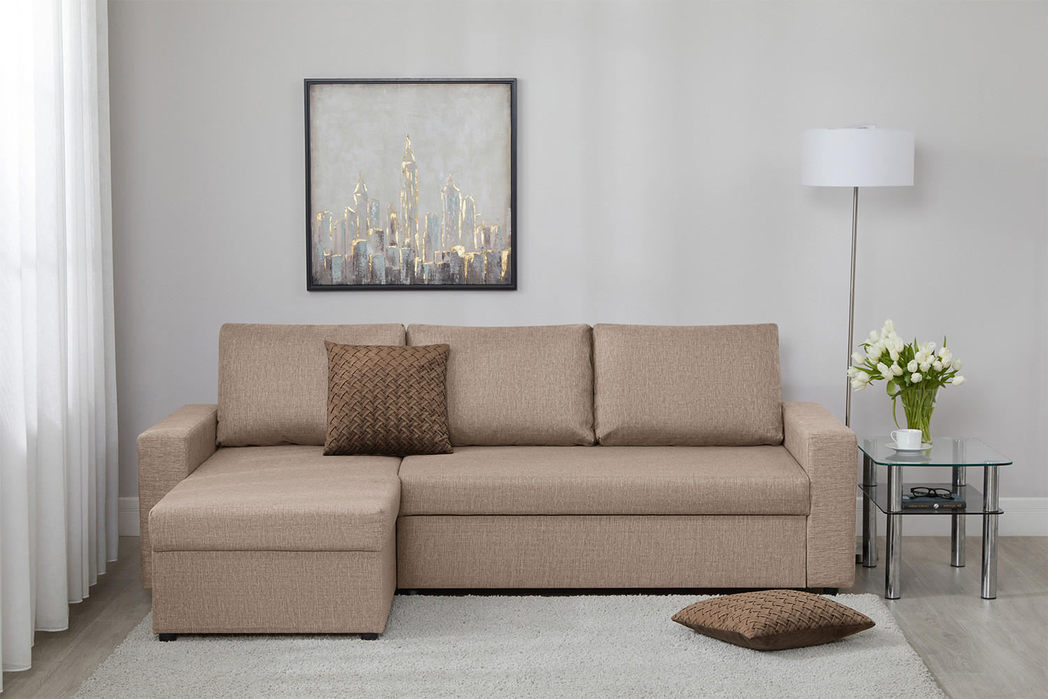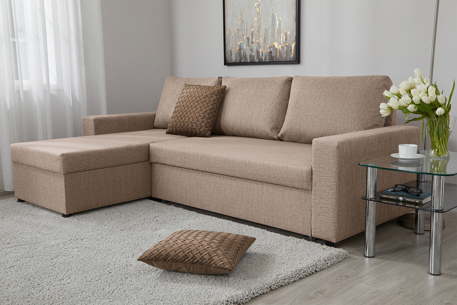 Максимально использовать площадь небольшой гостиной поможет современный угловой диван-кровать Торонто. Его основным преимуществом является наличие универсального угла, местоположение которого можно выбрать во время сборки.
