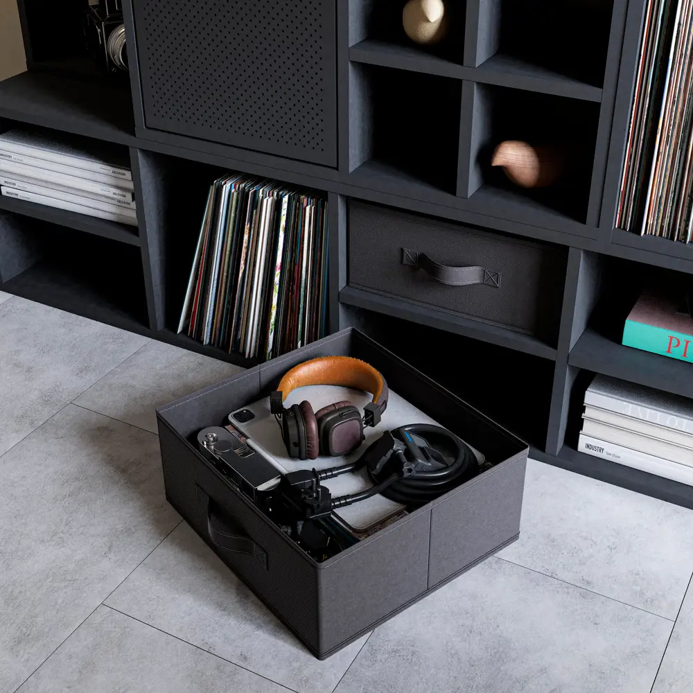 Короб Spaceo Paris из полиэстера позволяет эффективно использовать пространство стеллажа или шкафа, убрать с виду белье, носки и другие мелкие предметы гардероба, навести порядок в детской комнате. Аккуратный дизайн и графитовый цвет позволяют установить текстильный короб на открытой полке или прямо на полу.