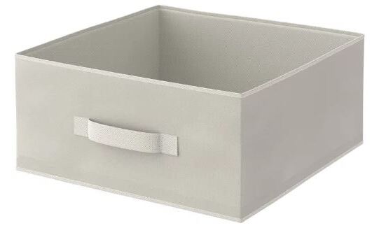 Конструкция компактная, без крышки. При необходимости быстро складывается. Размер изделия 15х31х31 см, объем — 14,4 л. Короб совместим с мебелью серии Spaceo Kub (занимает половину квадратного модуля). Благодаря ручке легко достается с полок. Аксессуар нельзя мыть, уход — сухая чистка.