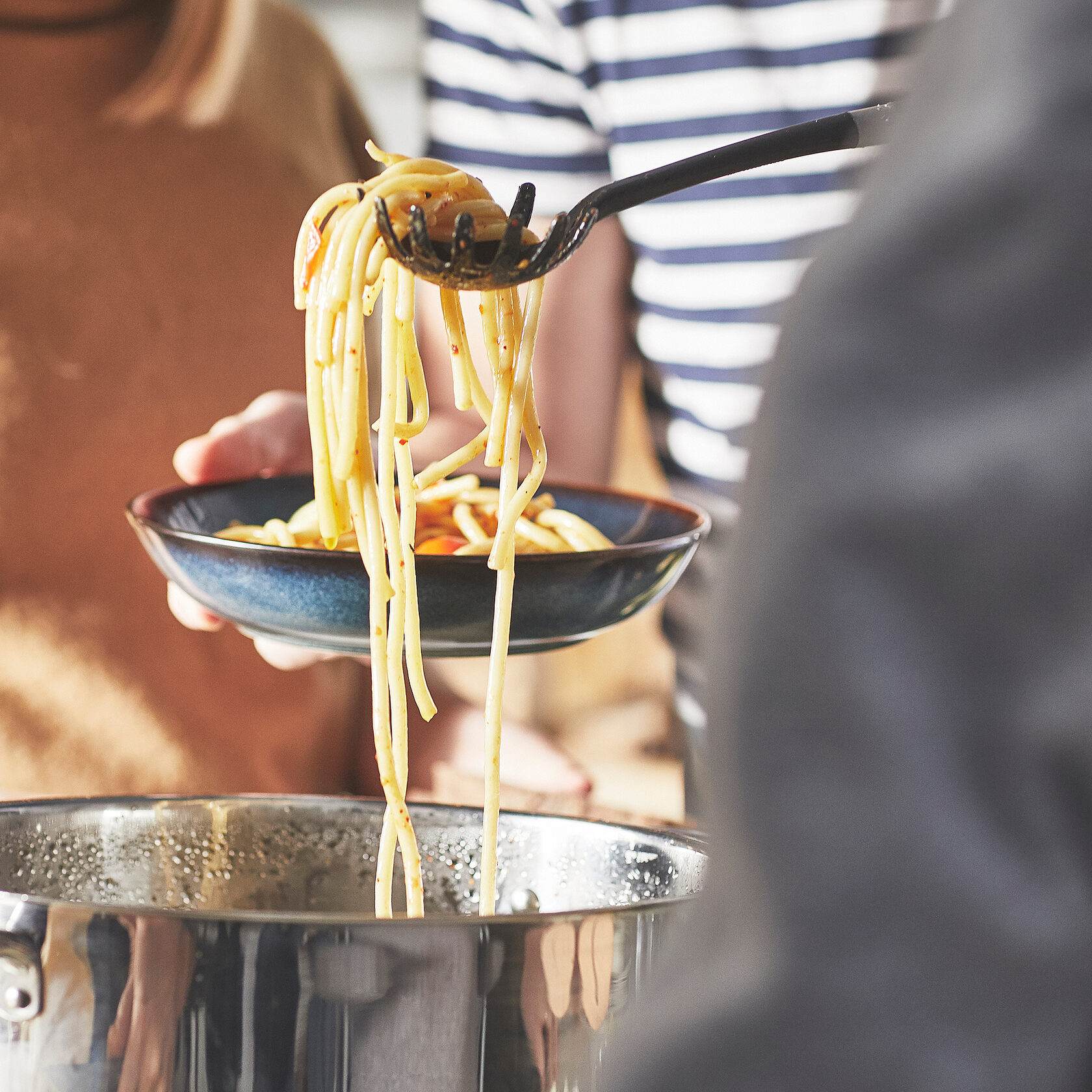 Глазурованная глубокая тарелка насыщенного синего цвета с золотисто-коричневым ободком станет достойной оправой для ваших кулинарных шедевров. Поставьте на стол эту простую лаконичную посуду, и вы получите красивую сервировку в традиционном стиле.
