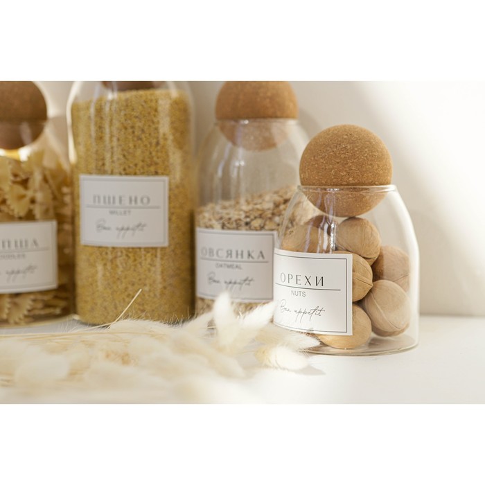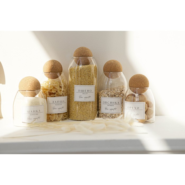 Банка стеклянная для хранения сыпучих продуктов Шар, 800 мл, 9х18,5 см, с пробковой крышкой