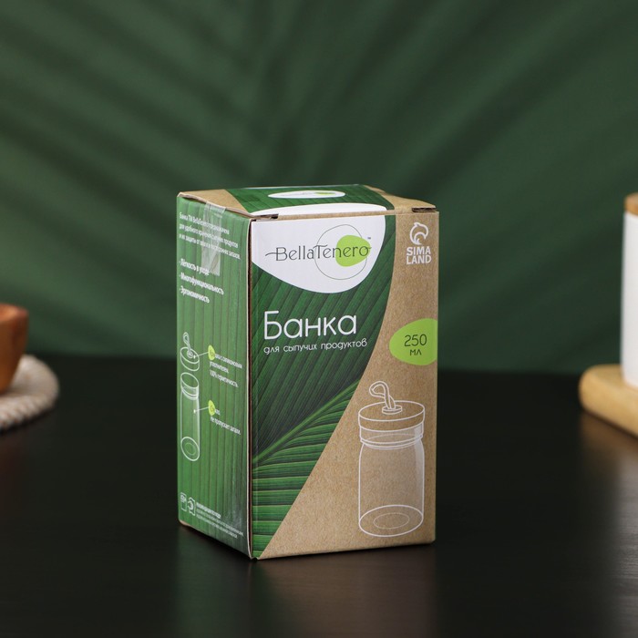 Банка для сыпучих продуктов BellaTenero «Эко» изготовлена из стекла. Крышка с силиконовым уплотнителем защитит продукты от влаги и посторонних запахов.