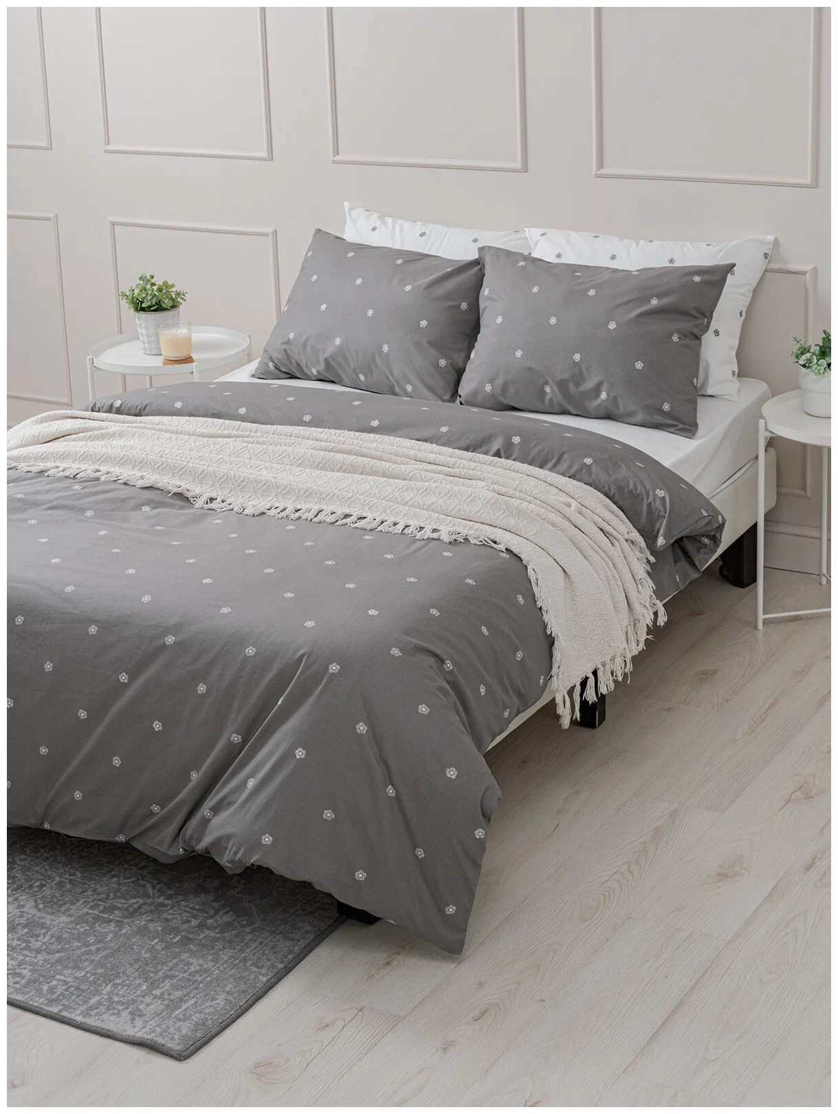 Плотная и мягкая ткань из 100% хлопка выдержит любые нагрузки, в ней 152 нити на кв. дюйм (124г/м2)