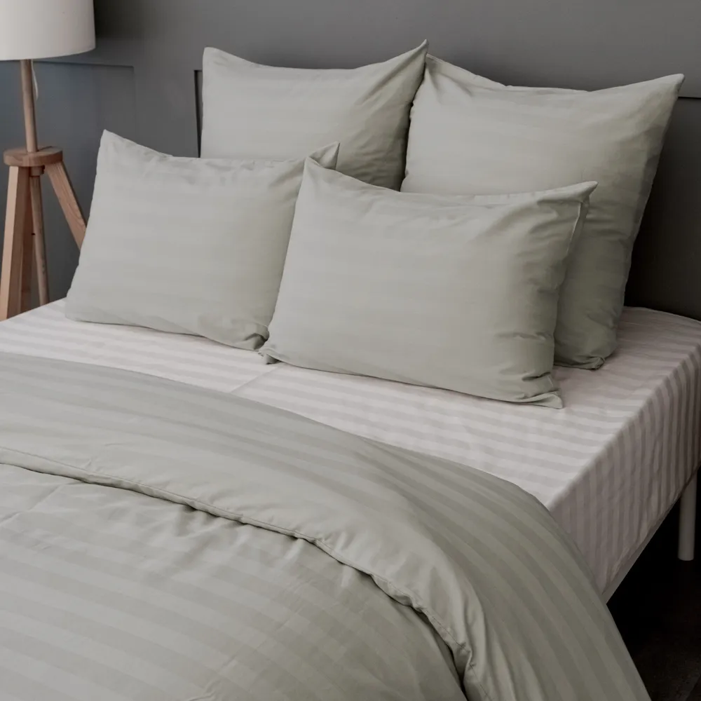 Ткань нежная и шелковистая, при этом комфортная и прочная, в ней 213 нитей на кв. дюйм. Страйп-сатин выдержит любые нагрузки, пройдет значительное количество стирок, не деформируется и не потеряет цвет.