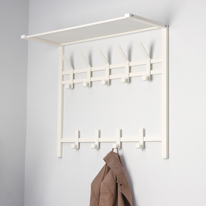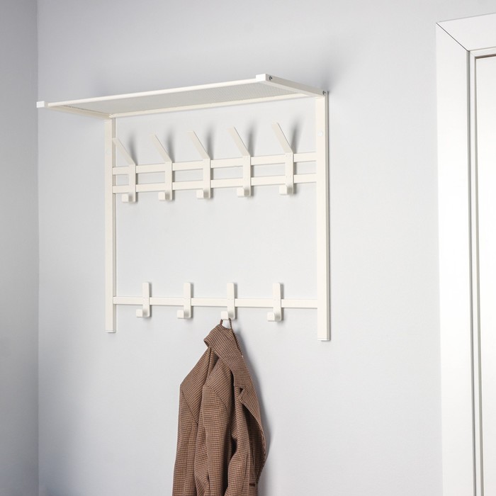На полке можно разместить головные уборы, шарфы, полотенца или же повесить зонт;Ее можно использовать практически в любом помещении: в коридоре, в ванной комнате, гардеробной, на кухне и даже в бане.