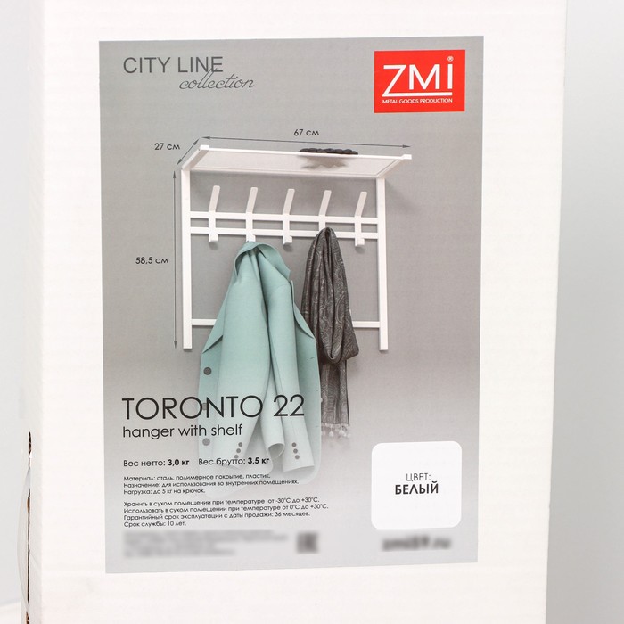 ТОРОНТО 22 Вешалка 2-х ярусная, с полкой д/головных уборов, белый. 59х67х27см, шт