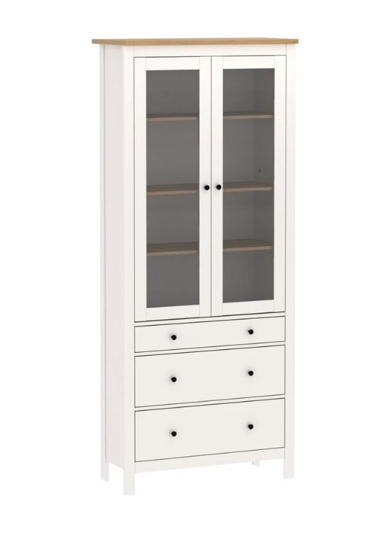 Шкаф-витрина 2-х дверный Белый/Ясень 90×215*41 см (ШВГ)