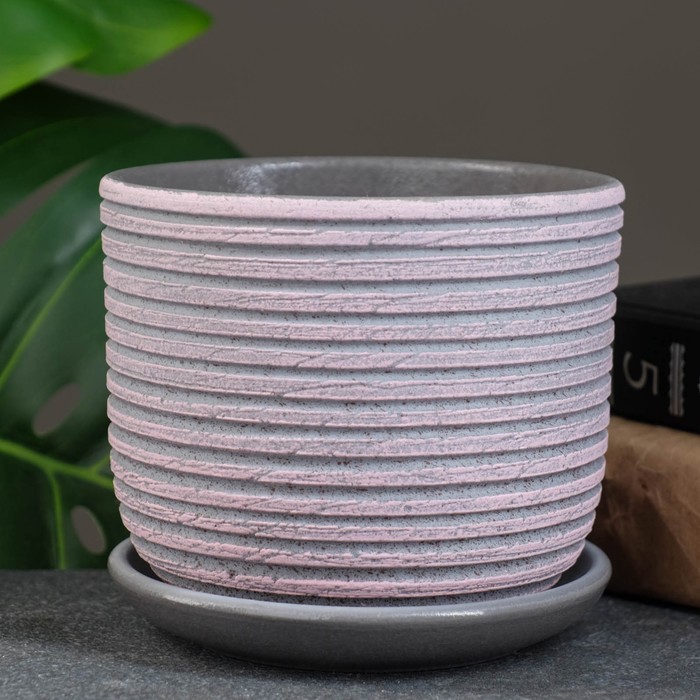 Кашпо с поддоном, серый, 1л, 13см, шт