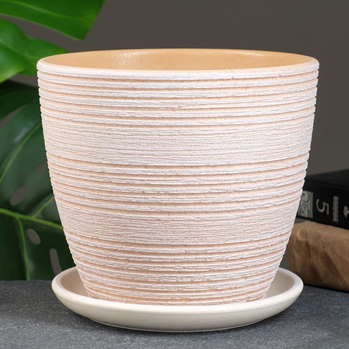 Кашпо с поддоном, белый/серый. 1л, 13см