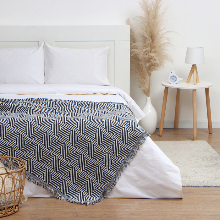 Покрывало, микрофибра, синий/серый. 230х210см