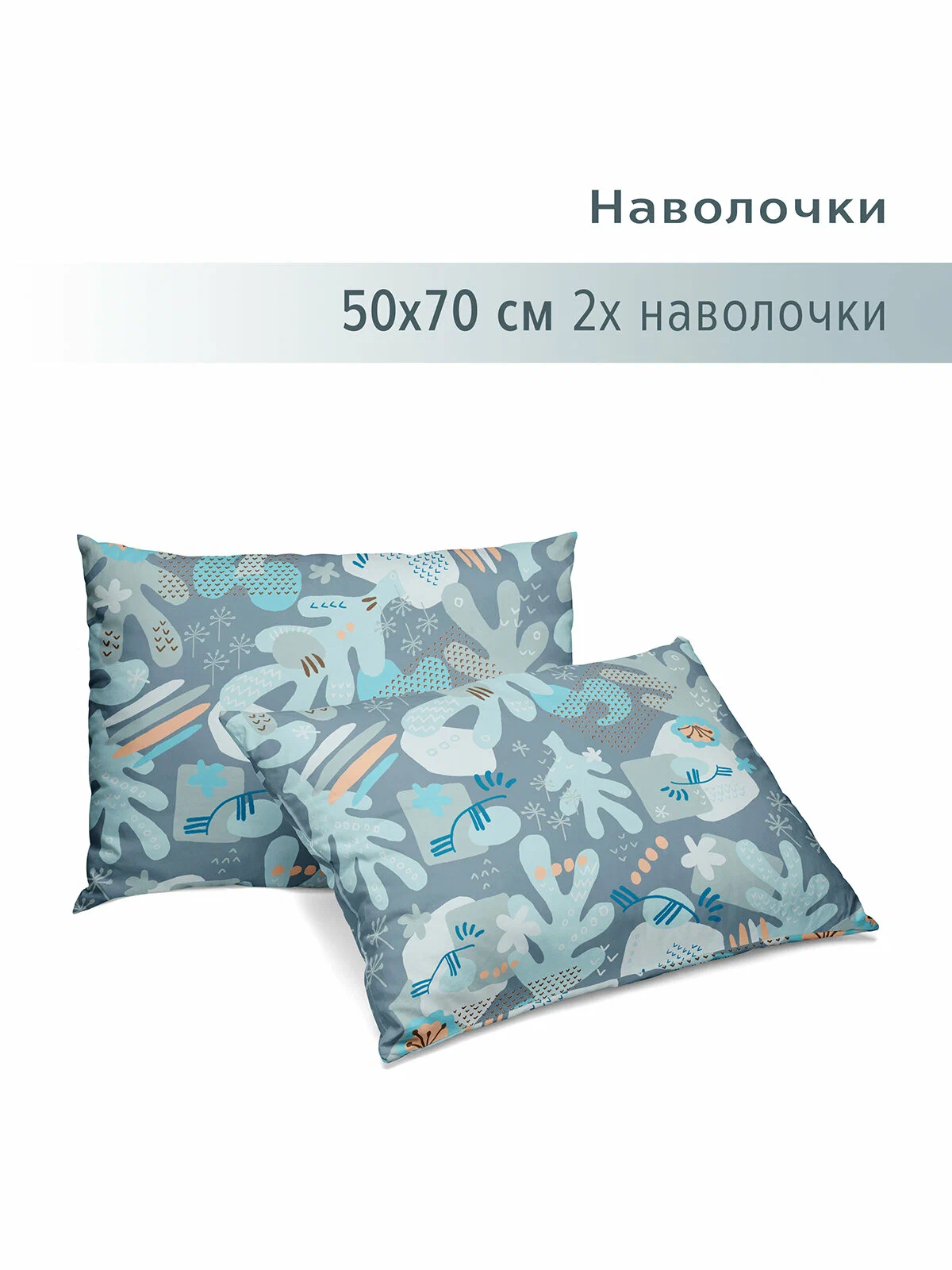Наволочка, серо-голубой, "коралл", перкаль. 50х70см / 2шт.(с2070шв, 21189-2)