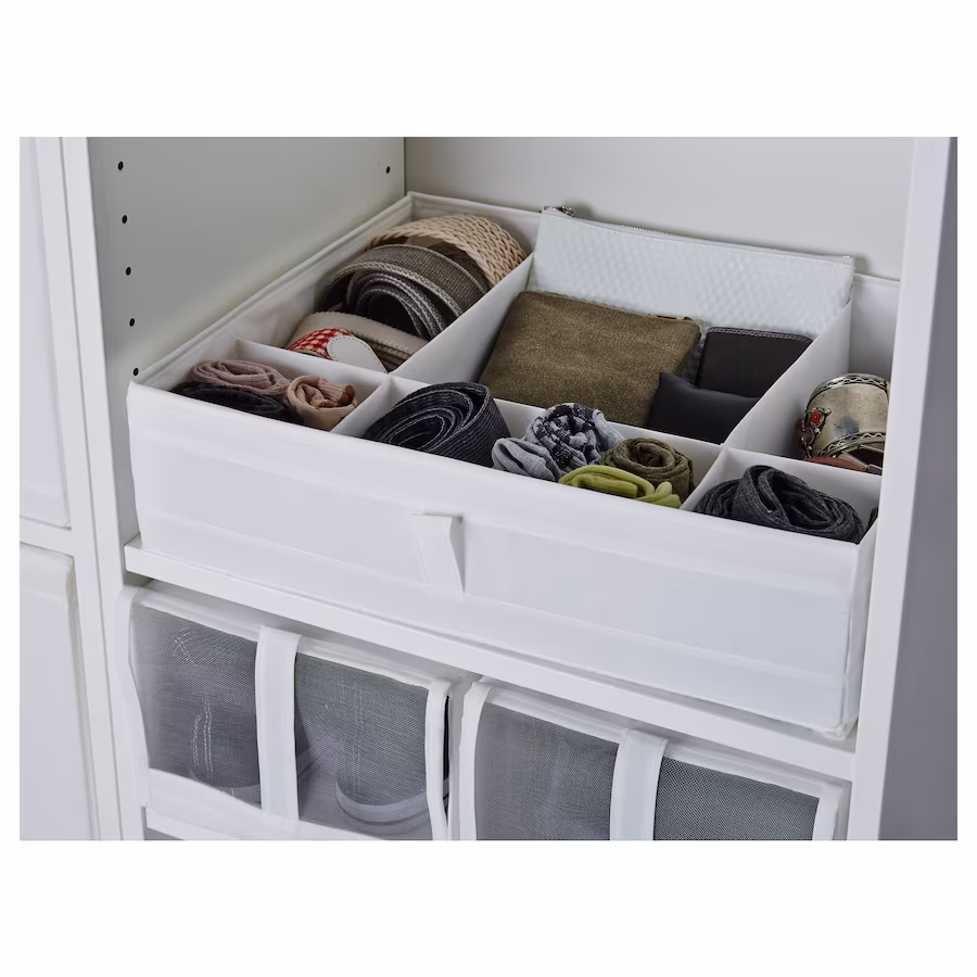 Рассчитан на раму гардероба PAX глубиной 35 см и шкаф для хранения SKUBB с 6 отделениями.