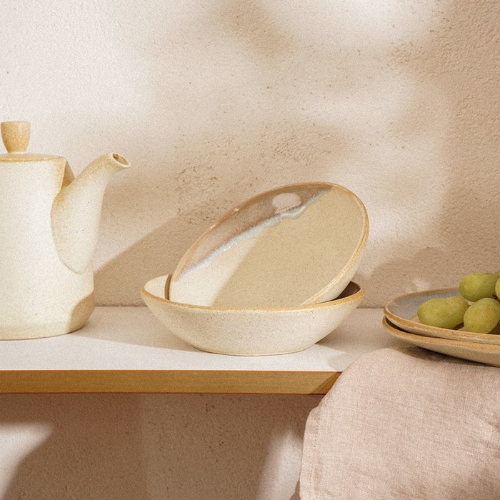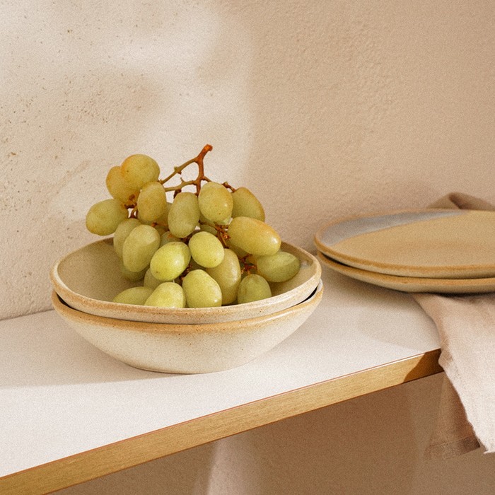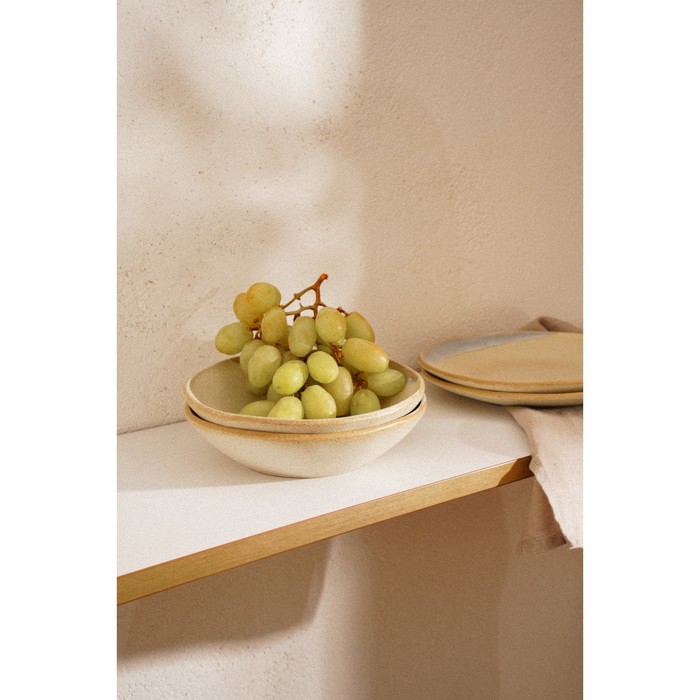 Светло-бежевый цвет посуды и аккуратные полосы создают визуально приятный, успокаивающий эффект, который прекрасно впишется в любую кухню. С гладкой текстурой и удобной круглой формой, эти миски станут незаменимыми помощниками на вашей кухне.